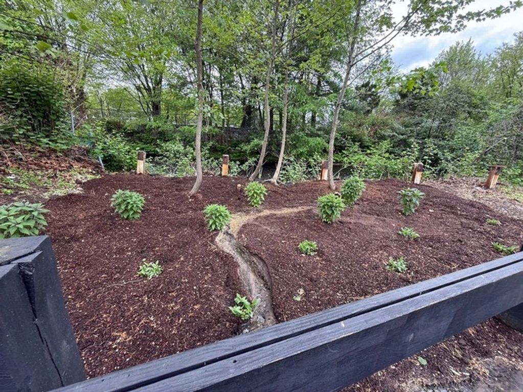 AFTER: Habernickel parking lot garden after the Rain Garden improvement.
